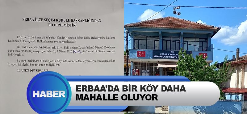 Erbaa’da Bir Köy Daha Mahalle OluyorGeçtiğimiz zaman dilimlerinde Erbaa’da şehir merkezine yakın köylerden bazıları merkeze bağlanarak mahalle statüsü kazanmıştı. Aldığımız bilgilere göre merkeze yakın köylerden olan Yukarı Çandır Köyü de merkeze bağlanmak için seçime gidiyor. İlçe Seçim Kurulu Başkanlığı tarafından seçmen listelerinin askıya çıktığı Yukarı Çandır Köyü 12 Nisan 2026 günü merkeze bağlanmak için sandık başına gidecek. -