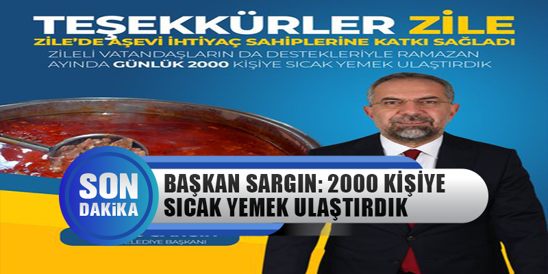 Zileli vatandaşların da destekleriyle ramazan ayında günlük 2000 kişiye sıcak yemek ulaştırdıkları belirten Zile Belediye Başkanı Şükrü Sargın, aşevine katkıda bulunan tüm hayırsever vatandaşlara teşekkür etti.