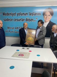 Toplantı ve açıklamanın ardından Mustafa Aşar, İyi Parti Turhal İlçe Başkanı İbrahim Yavuz’a Mevlevi panosu hediye etti.