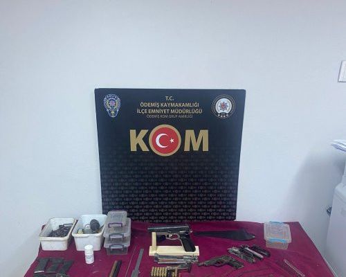 Ödemiş Kaçakçılık ve Organize Suçlarla Mücadele (KOM) Büro Amirliği ekipleri, ilçede ikamet eden S.K. adlı bir kişinin evinde, ücret karşılığı kurusıkı silahların namlusunu açtığı ve bu işin ticaretini yaptığını belirledi. Ödemiş Cumhuriyet Başsavcılığı koordinesinde belirlenen adrese düzenlenen operasyonda, 1 kurusıkıdan çevirme tabanca, 1 tabanca gövdesi, 12 adet fişek, tabanca namlusu yapılacak metal borular, 28 adet tabanca icra yayı ve namlu yayı, çok sayıda namlu açımında kullanılan malzeme, 105 adet şarjör yayı ve 20 adet kabze ele geçirildi.