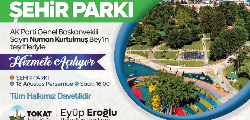 Tokat Belediye Başkanı Eyüp Eroğlu ikinci döneminde tamamlayarak vatandaşların hizmetine sunulan Tokat Şehir Parkının açılışının Ak Parti Genel Başkanvekili Numan Kurtulmuş’un katılımıyla gerçekleştireceklerini duyurdu.
