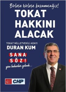 Cumhuriyet Halk Partisi Tokat Milletvekili ikinci sıra adayı Duran Kum seçim çalışmalarına Tokat’ın Kazova bölgesi denilen kesiminde devam ediyor.